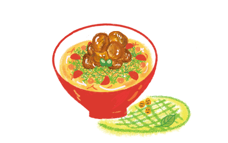 大豆肉の唐揚げがたくさんのってるカレーヌードル。
