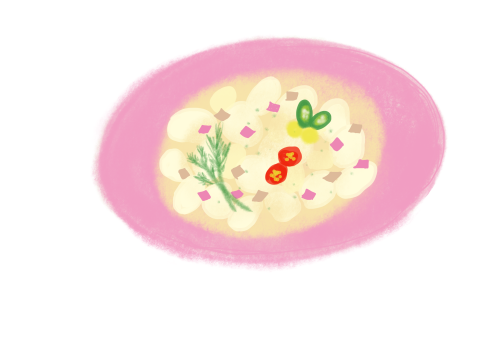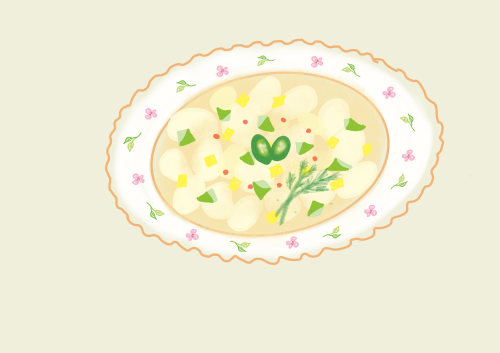 ほんのり桃の香りのソースにニョッキを絡めて。優しいクリームチーズのソースです。