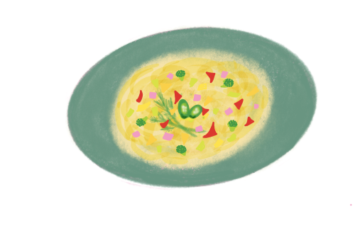 野菜と大豆の甘みにスパイスの香り。パルメザンチーズもよく合います。